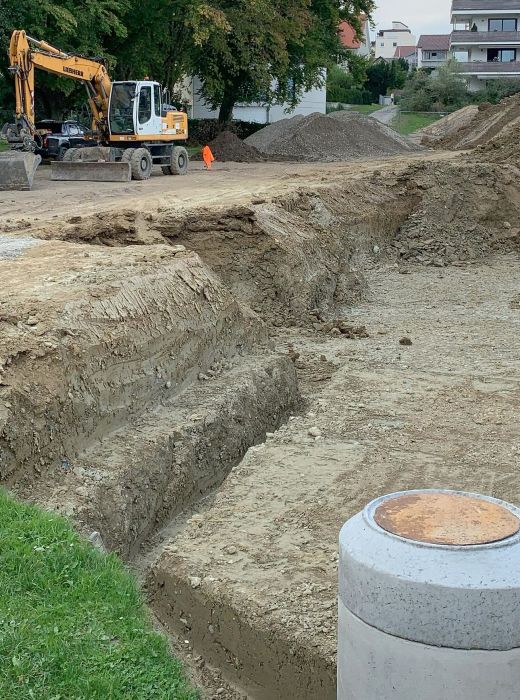 Ihr Bauprojekt benötigt eine solide Basis – diese beginnt schon mit dem Aushub. Mit unserer Arbeit schaffen wir buchstäblich das Fundament für Ihr neues Zuhause. Gerne begleiten wir Sie vom Bauaushub über den Leitungsbau bis hin zum Hausanschluss.
