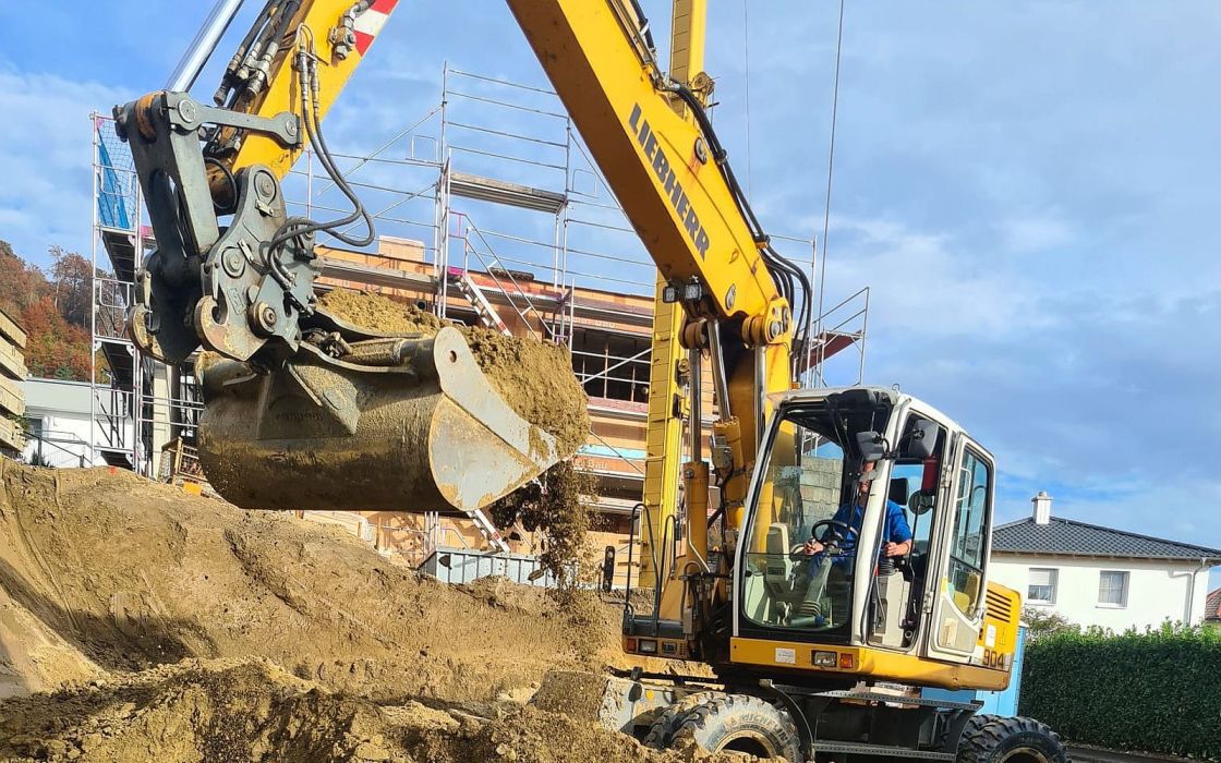 Wir sind Ihr Experte, wenn es um den Spatenstich und die Erschließungsarbeiten für Ihr neues Zuhause geht. Mit dem Aushub der Baugrube begleiten wir Sie gerne von Beginn an bei Ihrem Bauvorhaben. Dank unserer langjährigen Erfahrung pflegen wir engen Kontakt zu den Versorgungsträgern unserer Region am nördlichen Bodensee und bereiten mit unseren Erdarbeiten den Weg zum fertigen Hausanschluss.