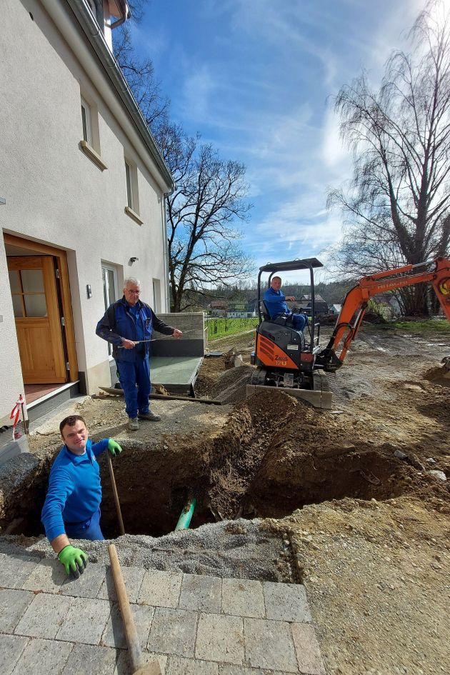 Alles, was in die Tiefe geht, gehört zu unserem täglichen Geschäft – so helfen wir Ihnen auch gerne bei der Anlage von immer wichtiger werdenden Wasserspeichern im Garten oder bei der Entwässerung Ihrer Außenflächen.